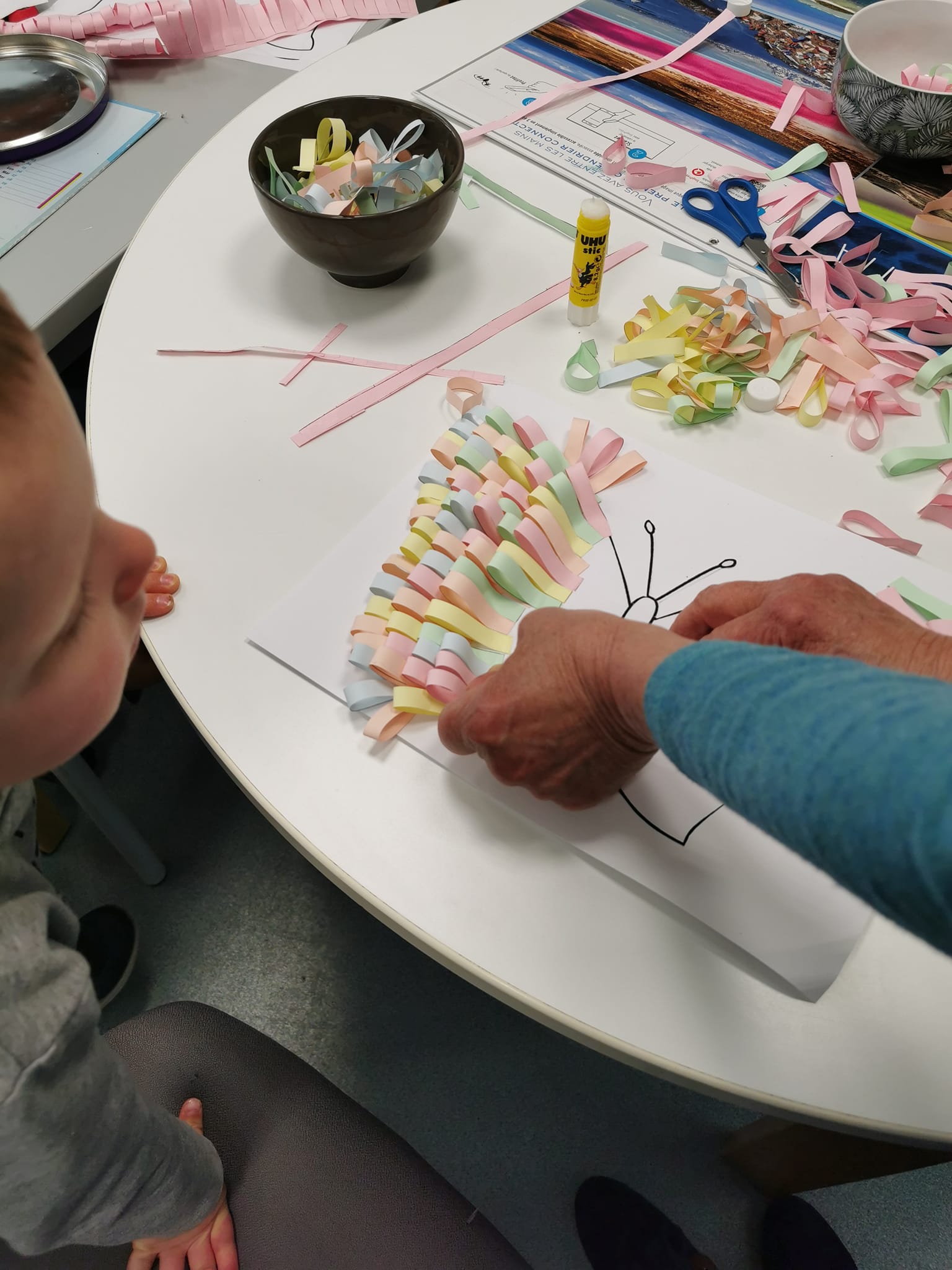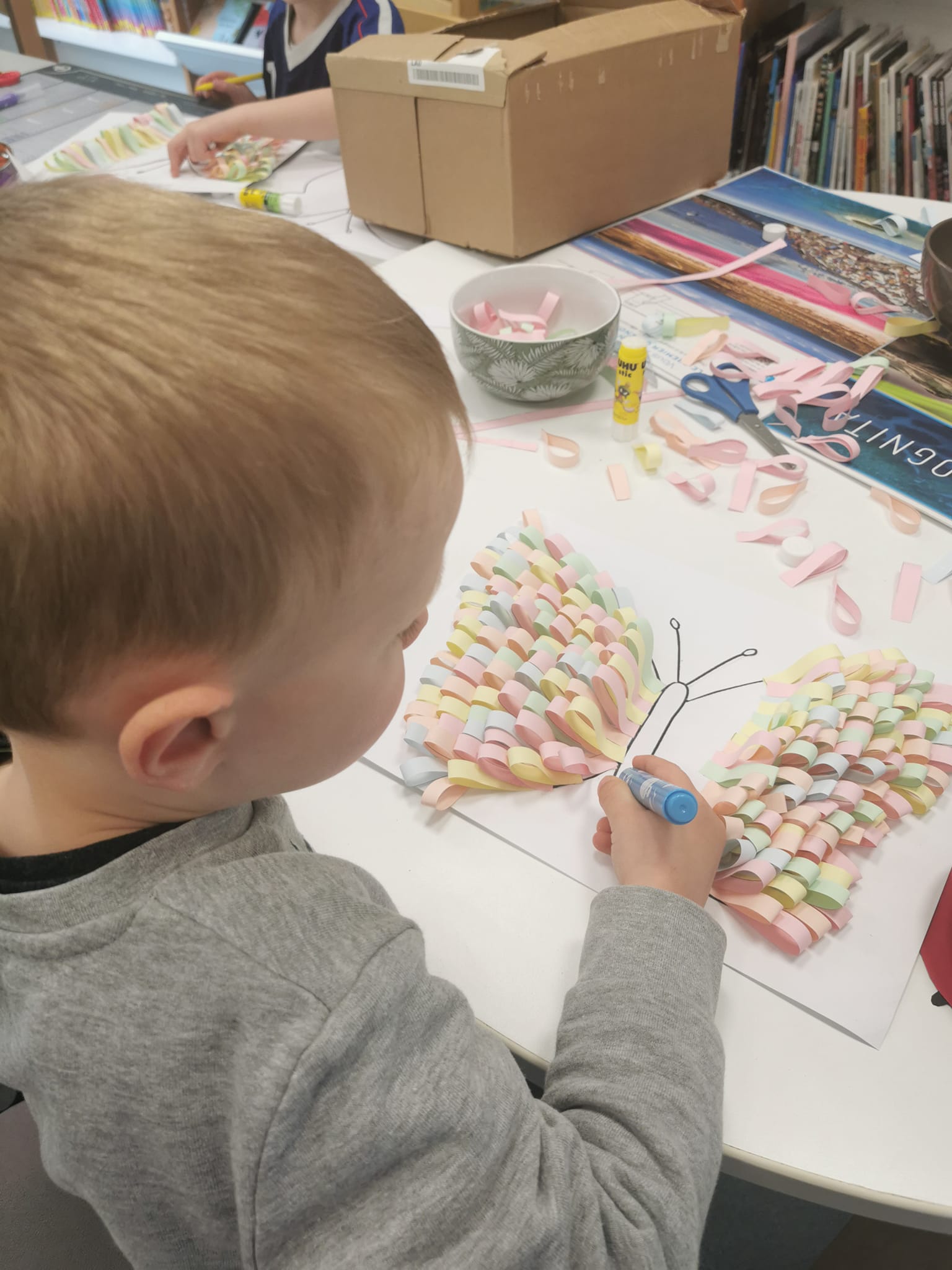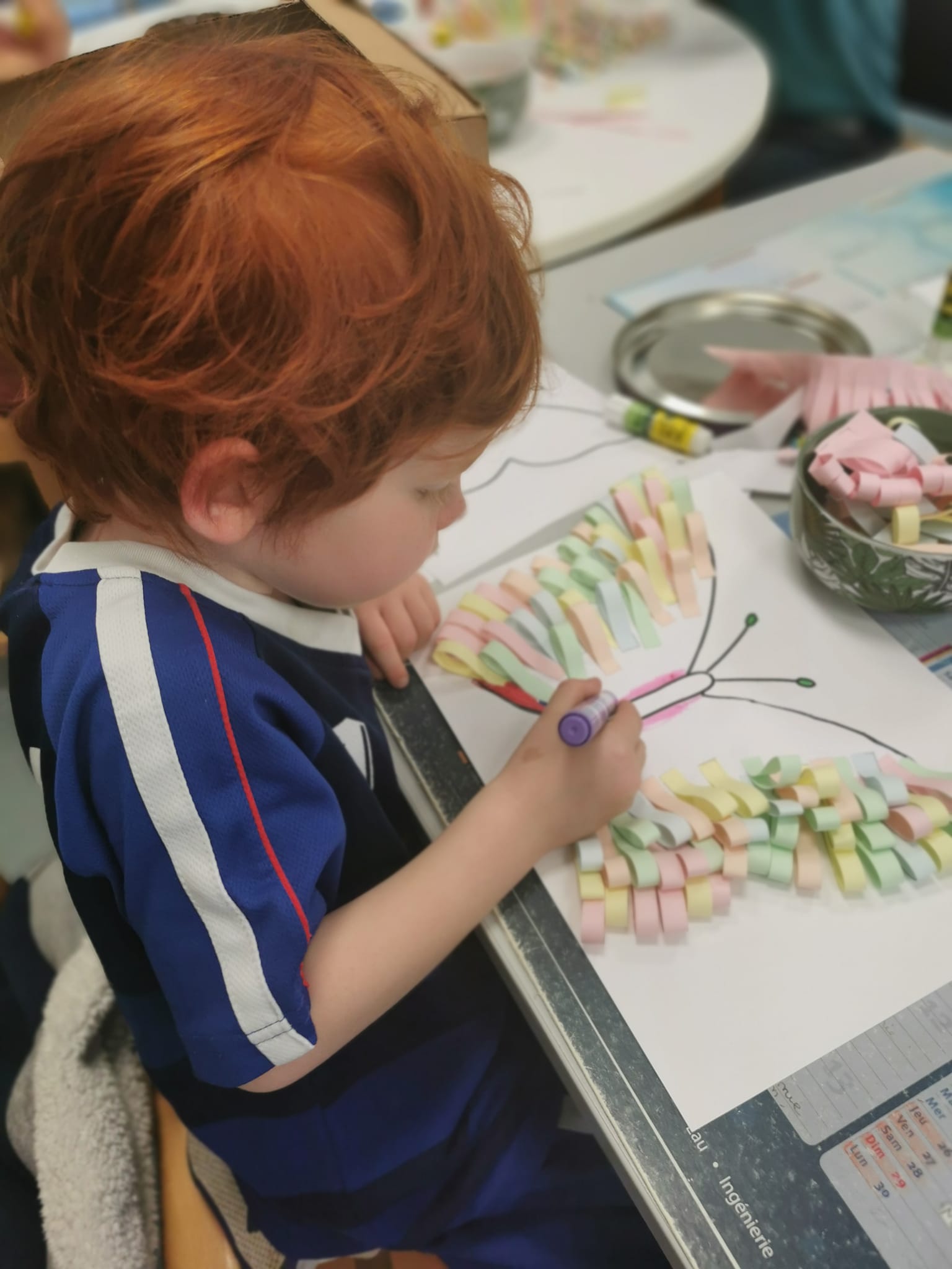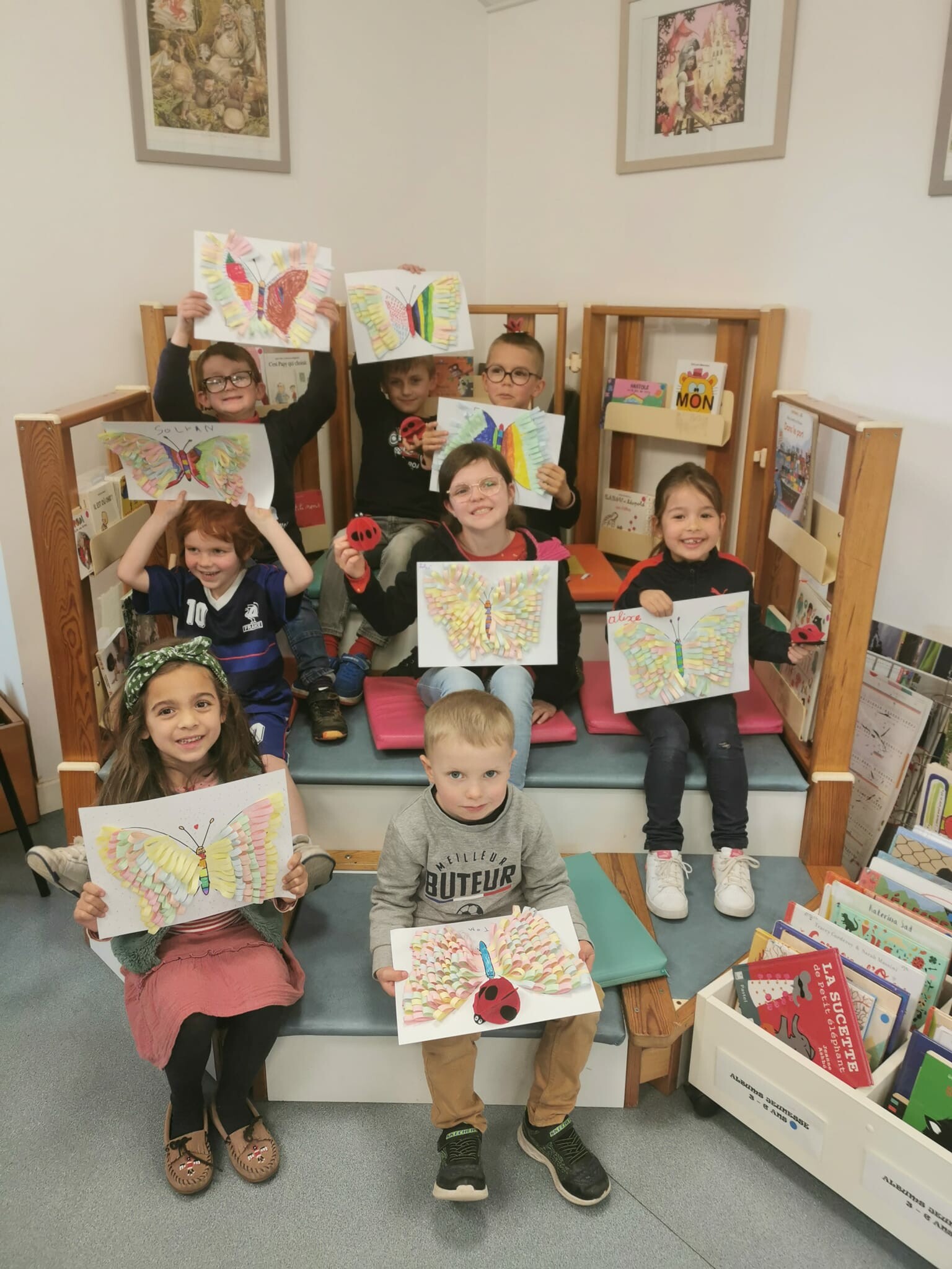 Mardi 18 avril, c'était lecture d'histoires et loisirs créatifs sur le thème du printemps pour Tom, Lili, Alixe, Lilaé, Solyan, Léo, Émile et Evann.