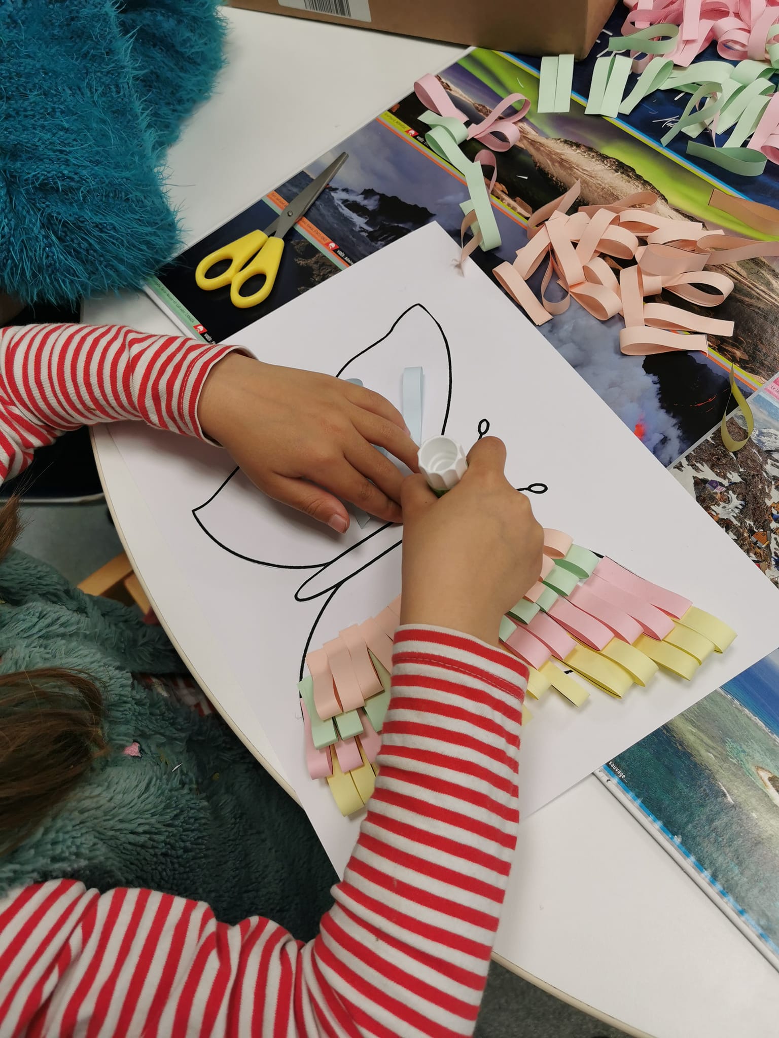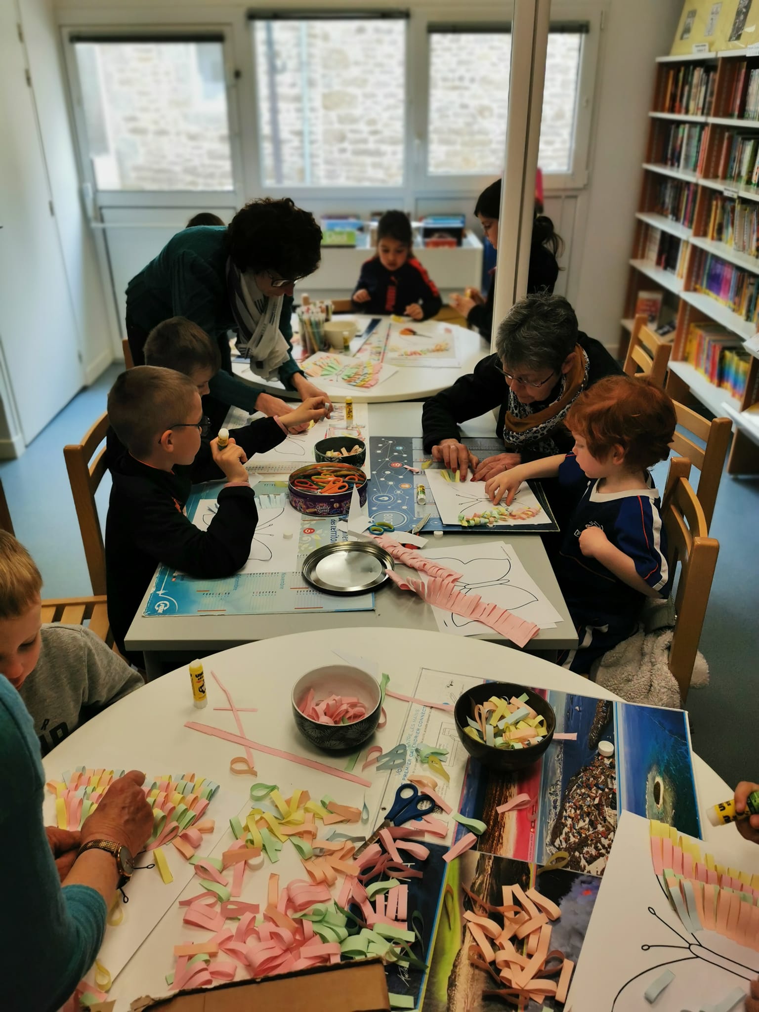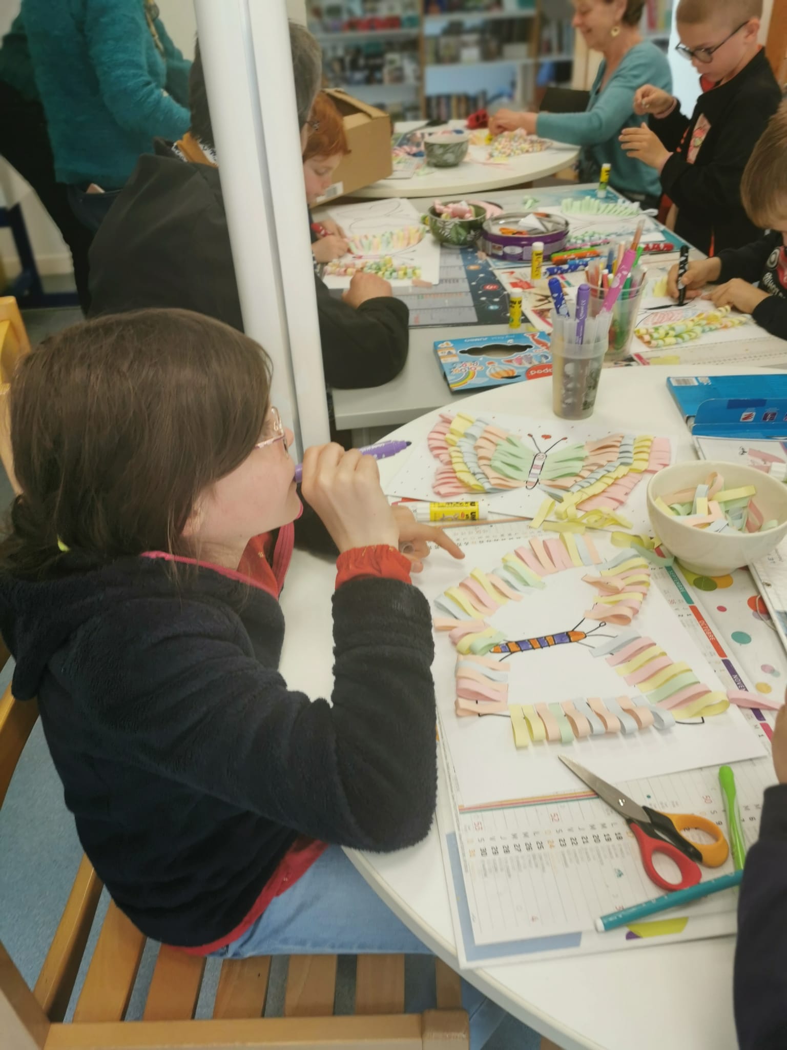 Encadrés par les bénévoles, les enfants ont créé un papillon et une coccinelle avant d'être récompensés par un petit goûter