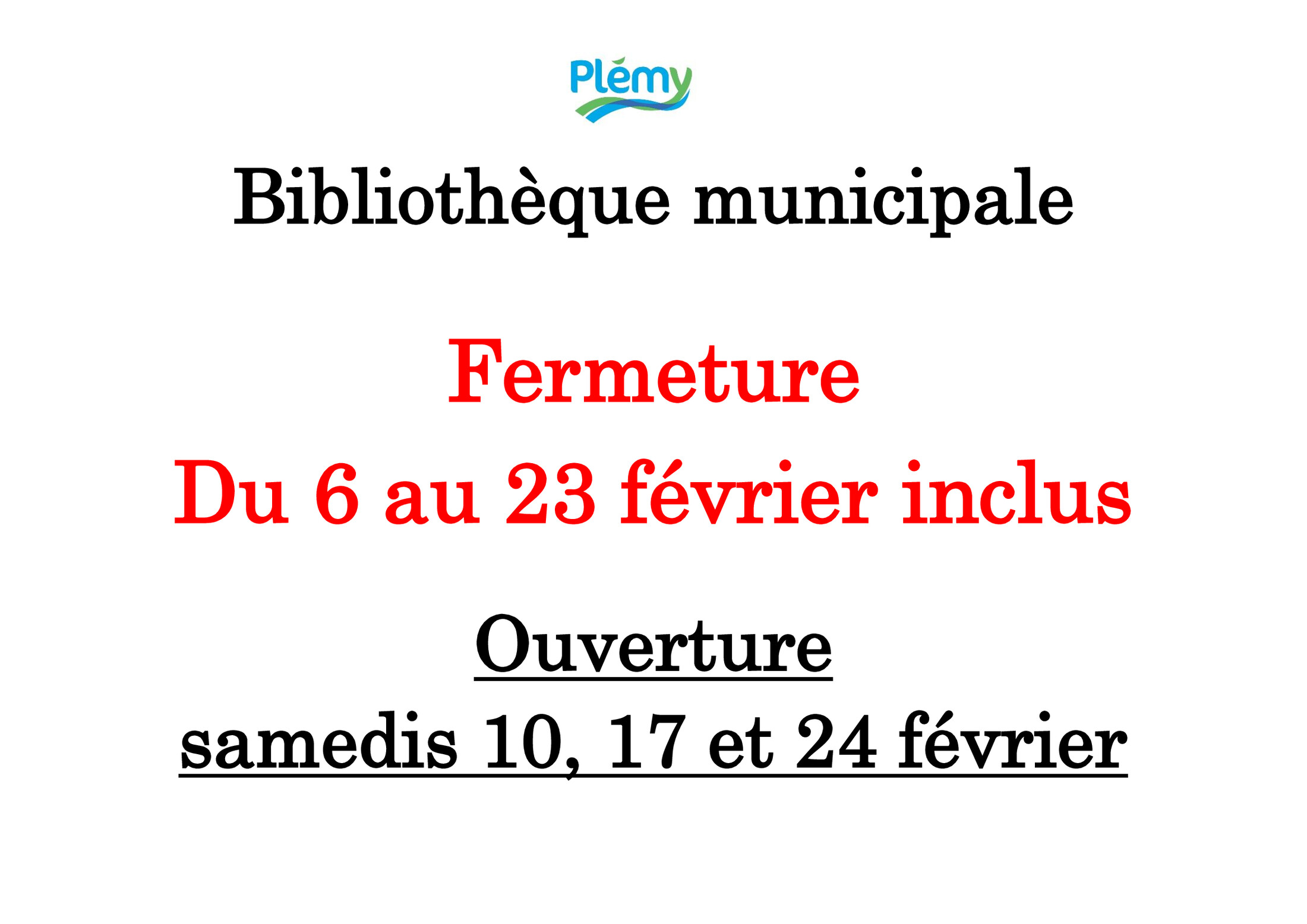 La bibliothèque sera fermée du 6 au 23 février inclus.