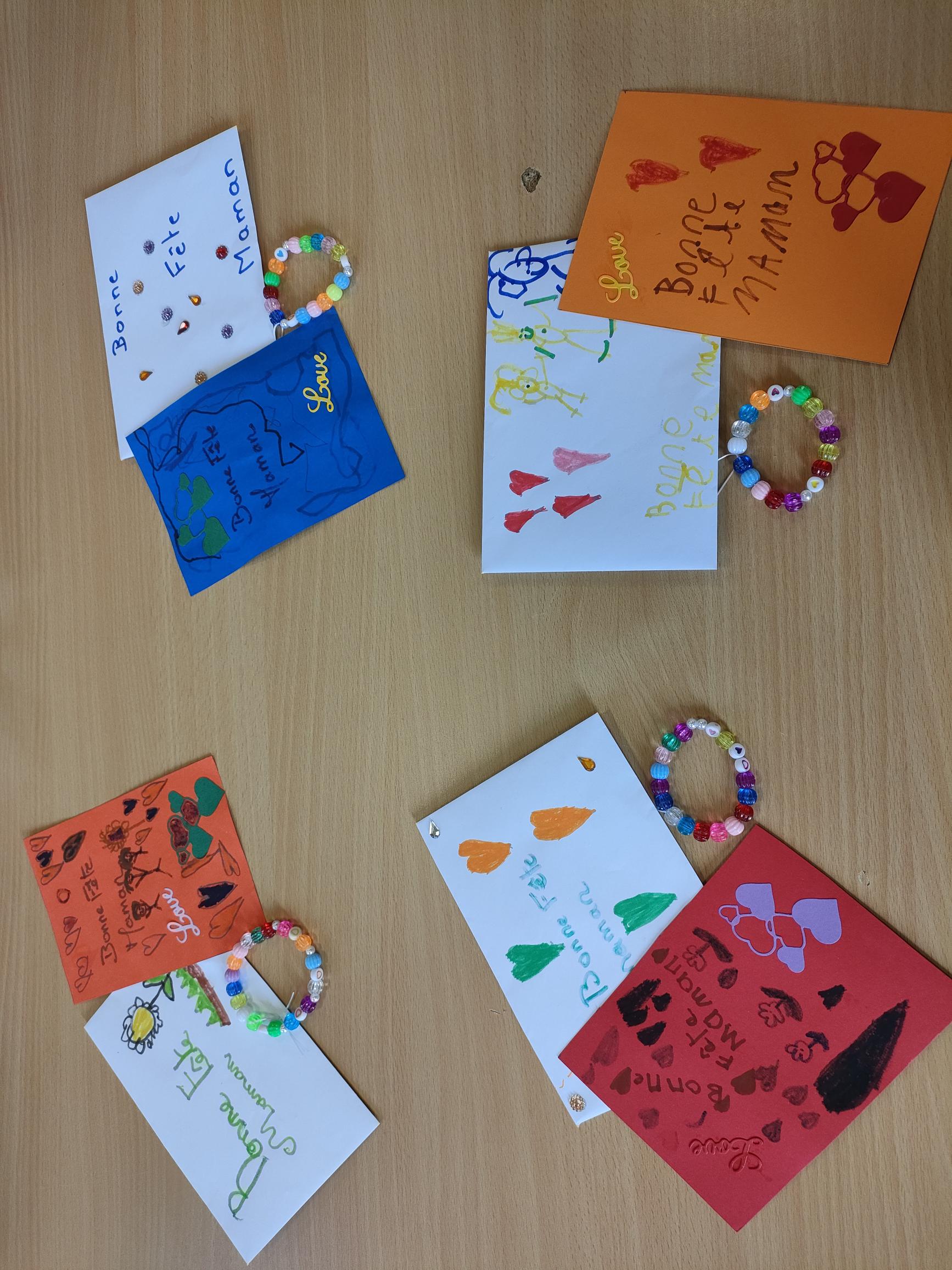 Les enfants ont fabriqué un bracelet et réalisé une jolie carte pour la fête des mères. Bonne fête à toutes les mamans