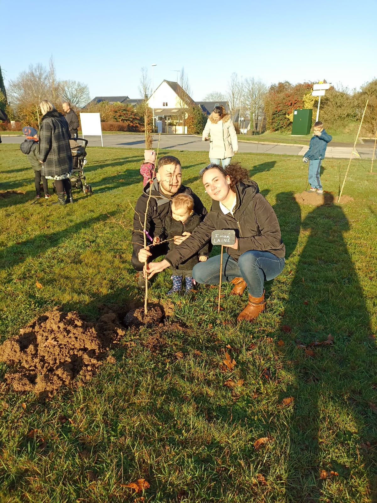 Samedi 16 décembre, un beau soleil d’hiver s’était invité sur le terrain situé entre le calvaire et la Maison des associations. Ce terrain, préparé par les pépinières de Lorge, avait été choisi par la municipalité pour réitérer l’opération « Un arbre, un enfant ».