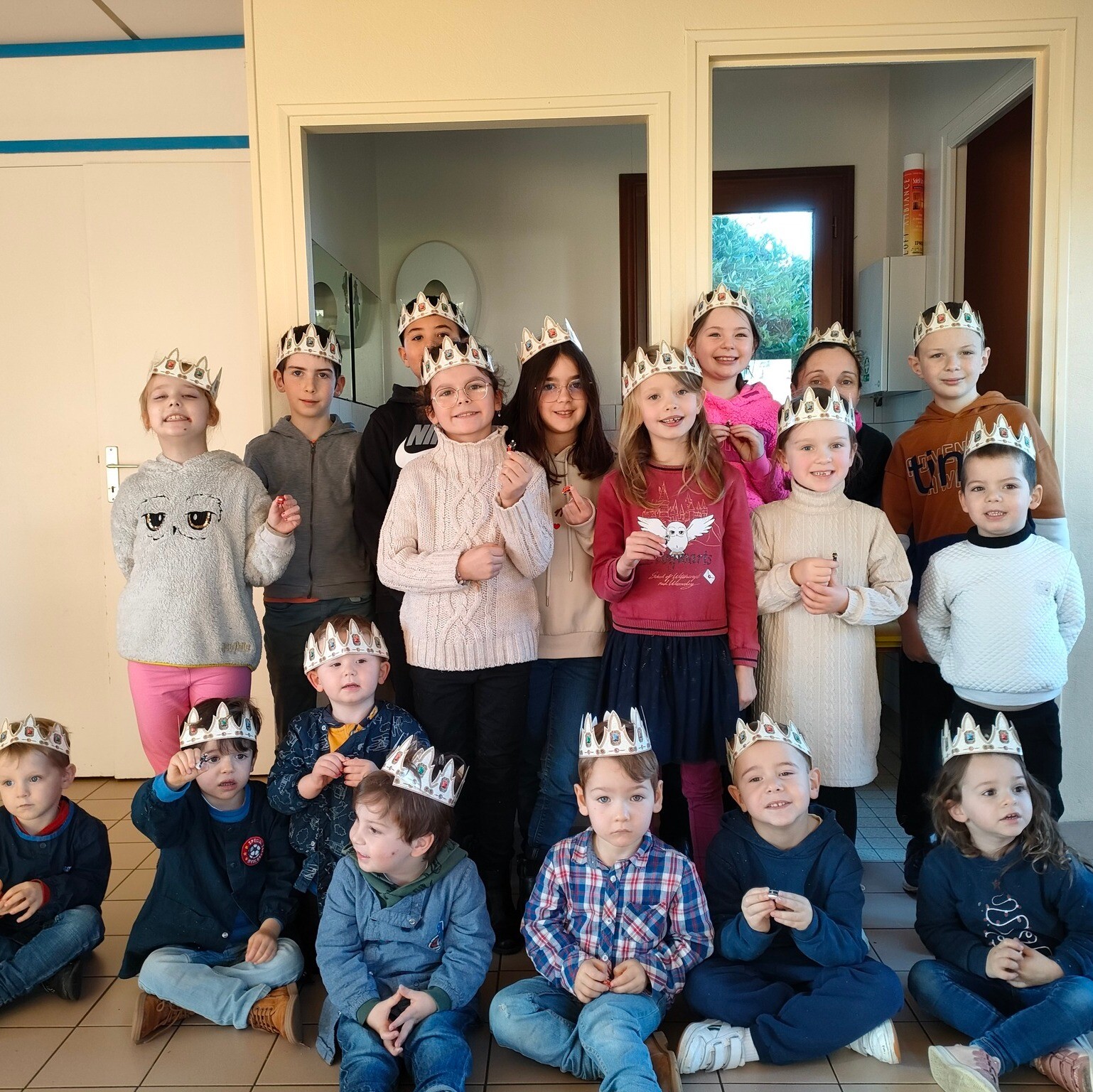 Lundi 8 janvier, les enfants ont dégusté la traditionnelle galette des Rois. Les reines et les rois ont posé fièrement, avec leur fève, devant l'objectif.