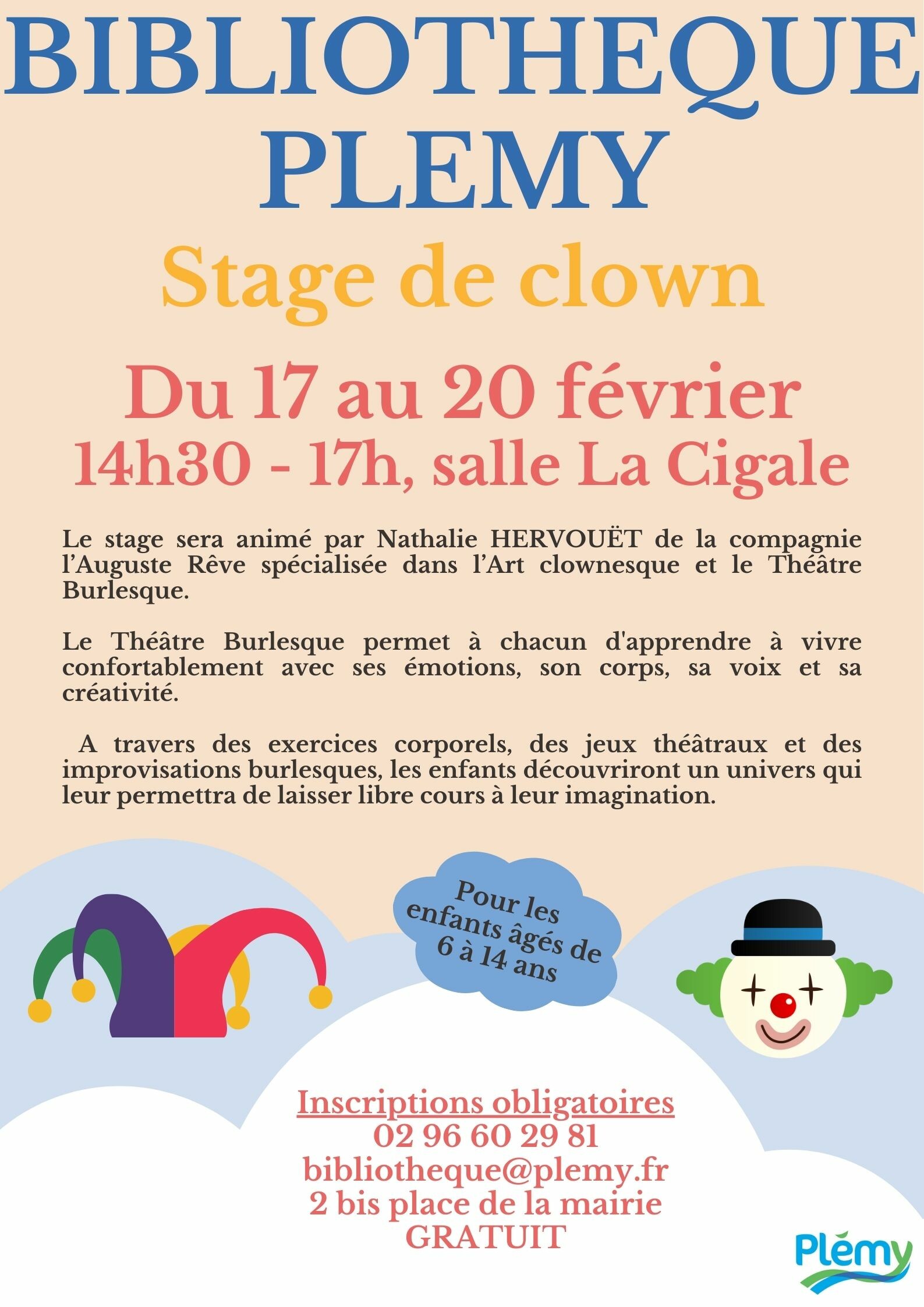 Stage de clown du mardi 17 au vendredi 20 février de 14h30 à 17h à la salle La Cigale
